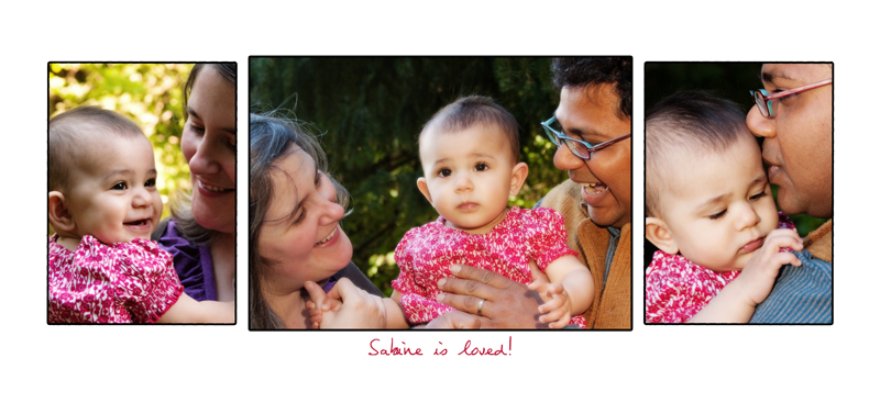 First comes loves, then comes marriage, then comes Sabine in a baby carriage! I photographed Kate & Amit’s wedding a couple of years ago. I was so happy when they called to say they had a new member of the family….little Sabine. What a beautiful name…for a beautiful baby. Here’s our first session together. We’ve already got the next one planned with her and Joey – the family dog! Can’t wait.