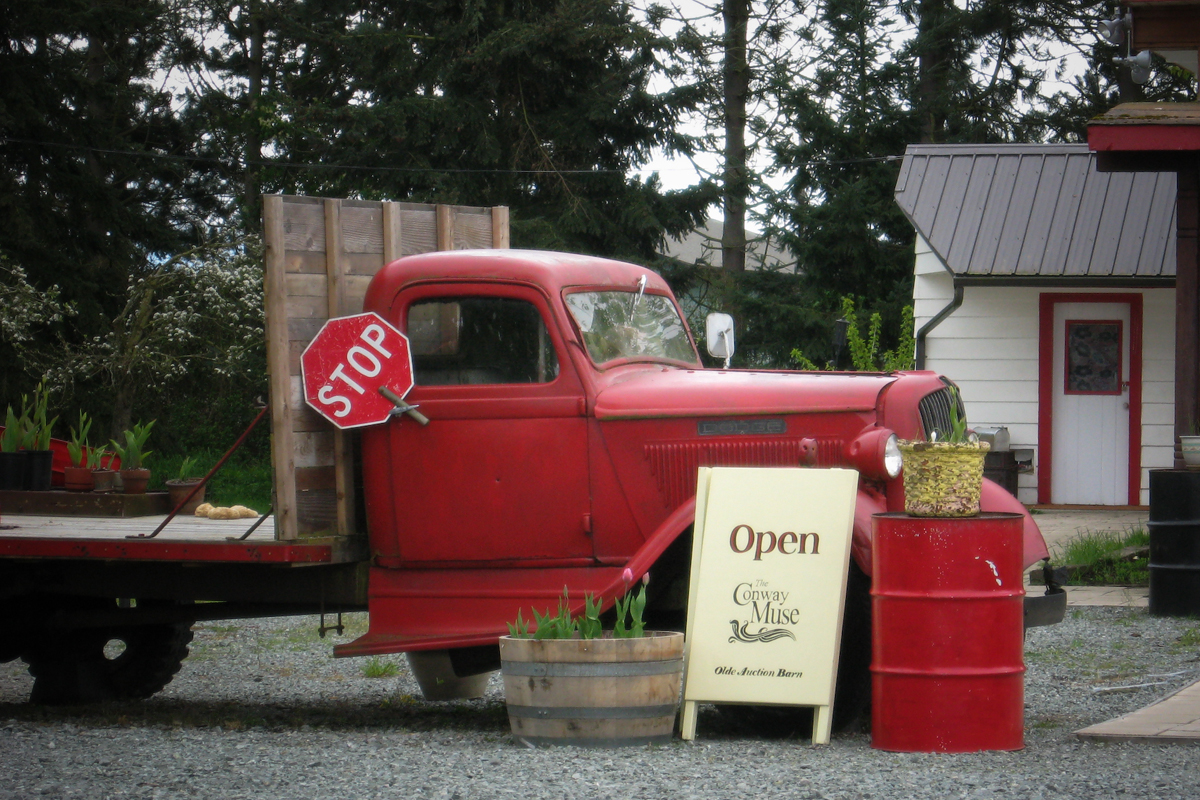 Took a little drive thru Snohomish, Washington today. The beautiful weather had people strolling the village streets and filling up the bars and restaurants. Upscale clothing stores, antique and home decor shops were bustling with activity. My favorite of course, is always the funky antique shop further down the road and the winding backroads dotted with old barns and small aircraft flying overhead.